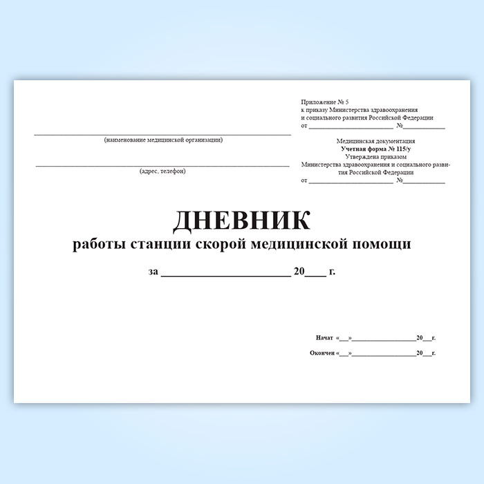 Дневник работы станции скорой медицинской помощи (форма 115/у) в Химках купить