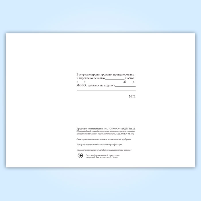Вы получаете печатную продукцию прошнурованной и c местом для вашей печати в соответствии с действующими нормативными документами: