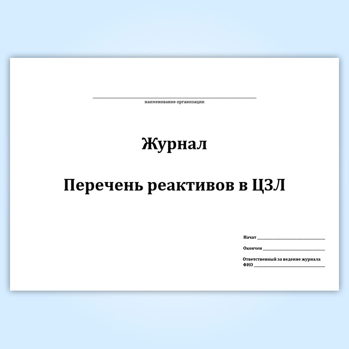 Журнал «Перечень реактивов в ЦЗЛ» в Химках купить