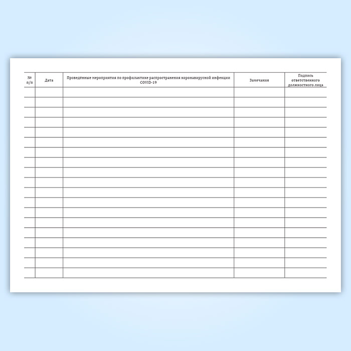 Журнал учета проведенных мероприятий по профилактике распространения коронавирусной инфекции COVID-19 в Химках купить
