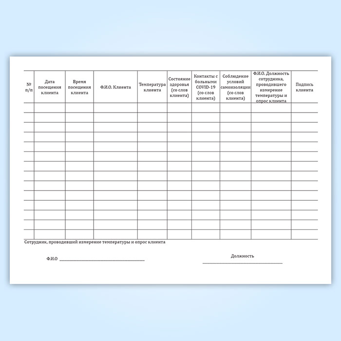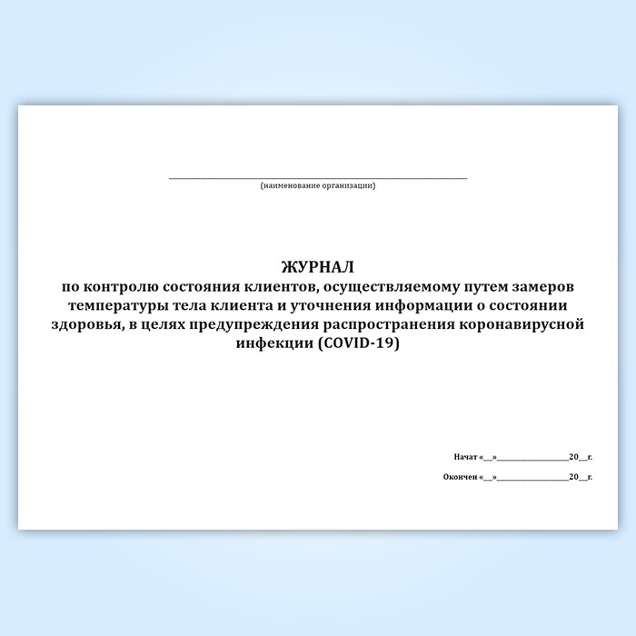 Журнал по контролю состояния клиентов, осуществляемому путем замеров температуры тела клиента и уточнения информации о состоянии здоровья, в целях предупреждения распространения коронавирусной инфекции (COVID-19) в Химках купить