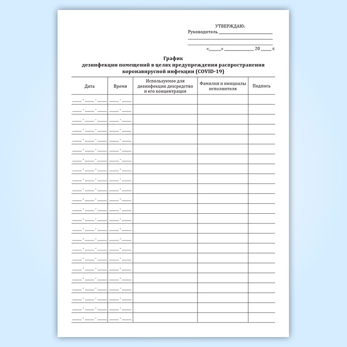 Журнал графика дезинфекции помещений в целях предупреждения распространения коронавирусной инфекции (COVID-19) в Химках купить