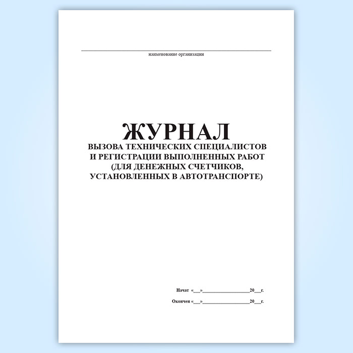 Журнал вызова технических специалистов и регистрации выполненных работ (для денежных счетчиков, установленных в автотранспорте) в Химках купить