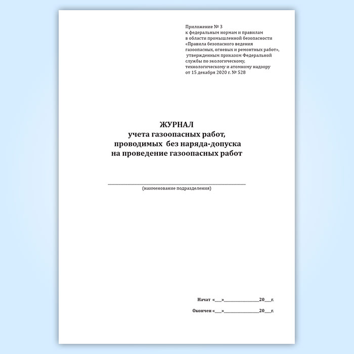 Журнал учета газоопасных работ, проводимых без наряда-допуска на проведение газоопасных работ в Химках купить