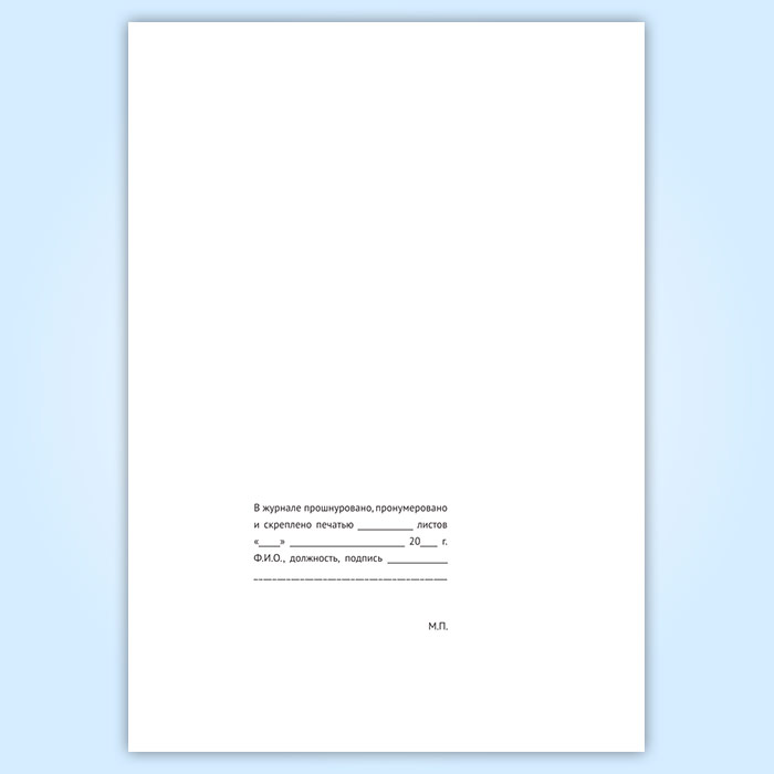 Вы получаете печатную продукцию прошнурованной и c местом для вашей печати в соответствии с действующими нормативными документами:
