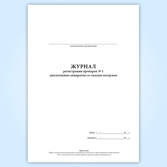 Журнал регистрации проверок N 1 дыхательных аппаратов со сжатым воздухом в Химках купить