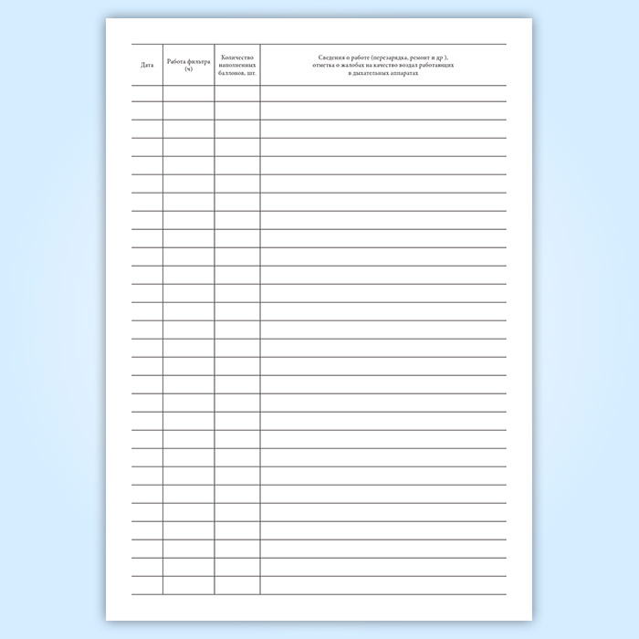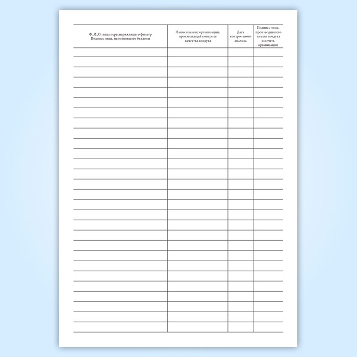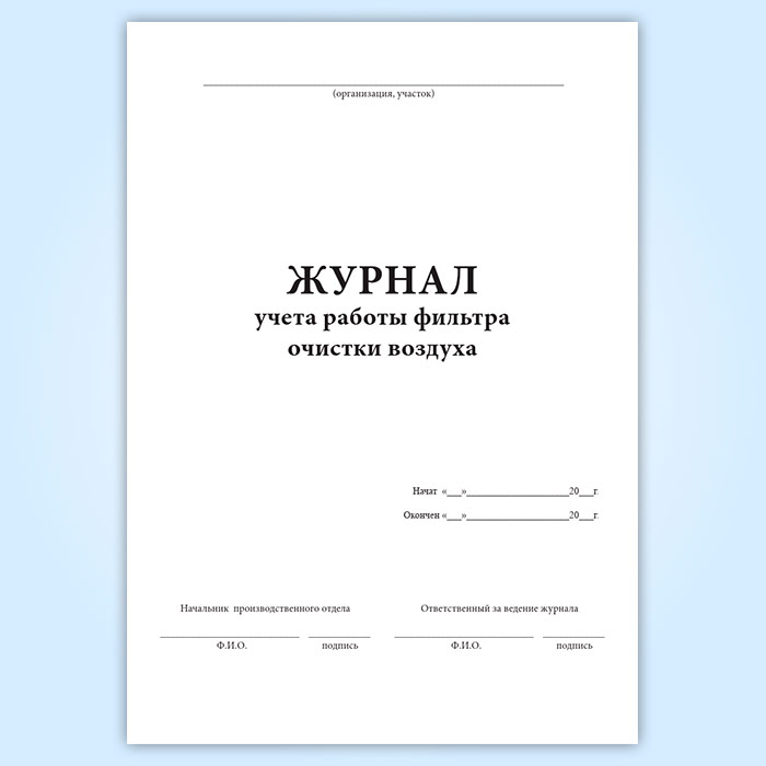 Журнал учета работы фильтра очистки воздуха в Химках купить