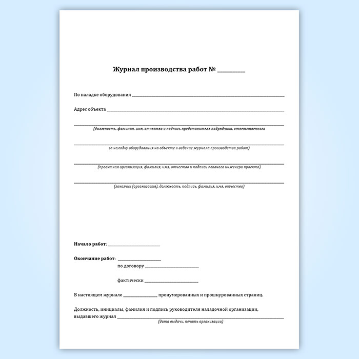 Журнал производства работ по наладке оборудования на объекте (СП 245.1325800.2015) в Химках купить