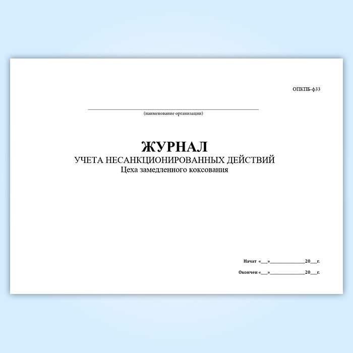 Журнал учета несанкционированных действий цеха замедленного коксования (ОПКПБ-ф33) в Химках купить
