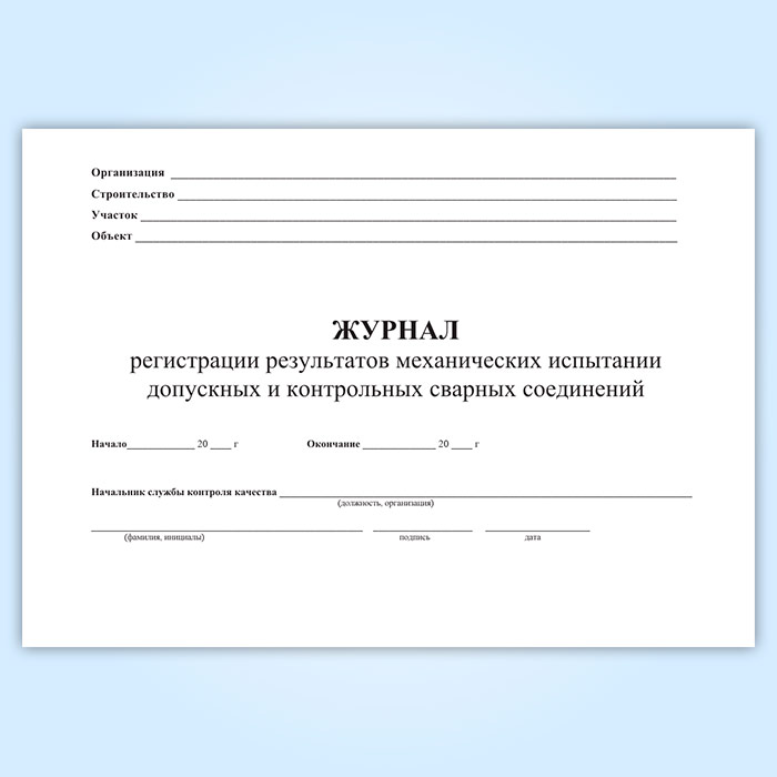 Журнал регистрации результатов механических испытаний допускных и контрольных сварных соединений в Химках купить