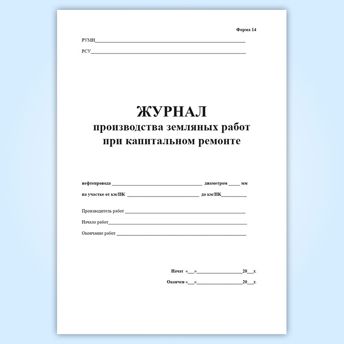 Журнал производства земляных работ при капитальном ремонте (форма 14) в Химках купить