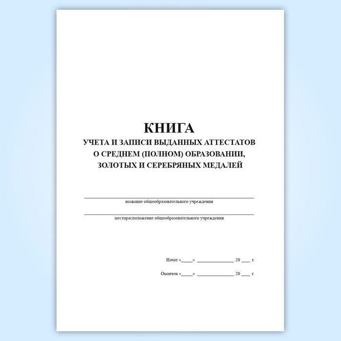 Книга учета и записи выданных аттестатов о среднем (полном) образовании, золотых и серебряных медалей в Химках купить