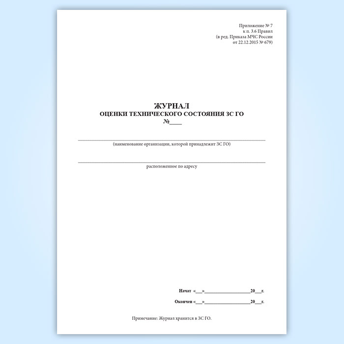 Журнал оценки технического состояния ЗС ГО в Химках купить