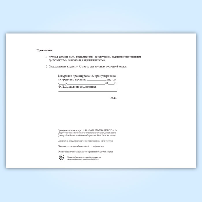 Вы получаете печатную продукцию прошнурованной и c местом для вашей печати в соответствии с действующими нормативными документами: