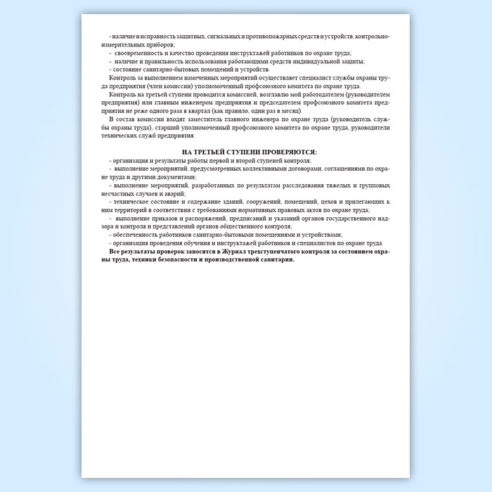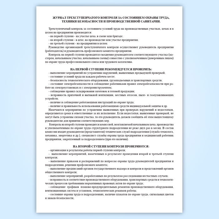 Журнал трехступенчатого контроля за состоянием охраны труда, техники безопасности и производственной санитарии 1 и 2 ступени в Химках купить