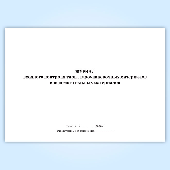 Журнал входного контроля тары, тароупаковочных материалов и вспомогательных материалов в Химках купить