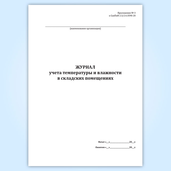Журнал учета температуры и влажности в складских помещениях (СанПиН 2.3/2.4.3590-20) в Химках купить