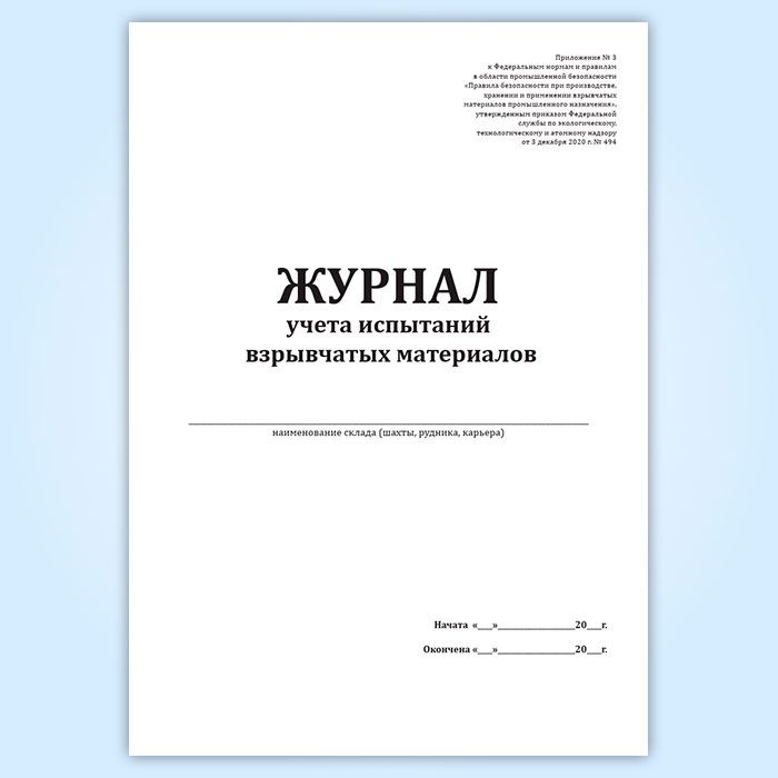 Журнал учета испытаний взрывчатых материалов в Химках купить
