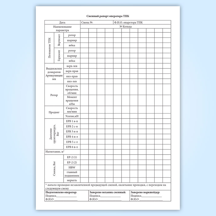 Журнал сменных рапортов операторов тоннелепроходческого комплекса в Химках купить
