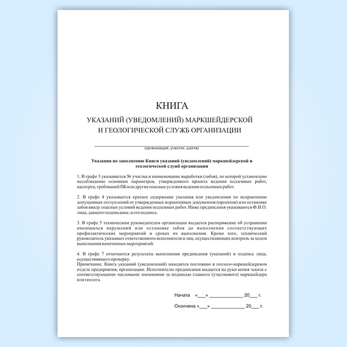 Книга указаний (уведомлений) маркшейдерской и геологической служб организации в Химках купить