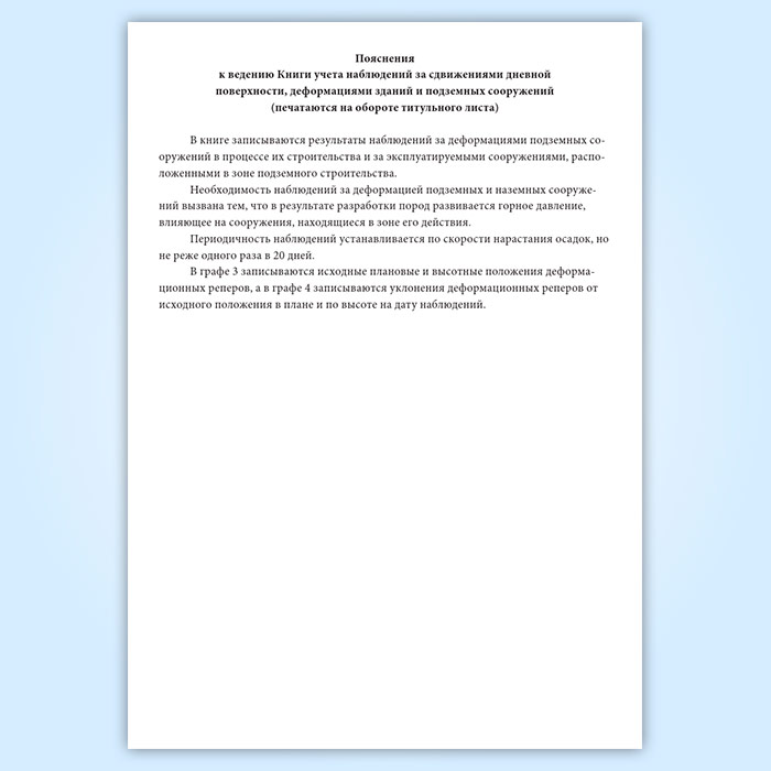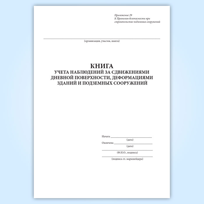 Книга учета наблюдений за сдвижениями дневной поверхности, деформациями зданий и подземных сооружений в Химках купить