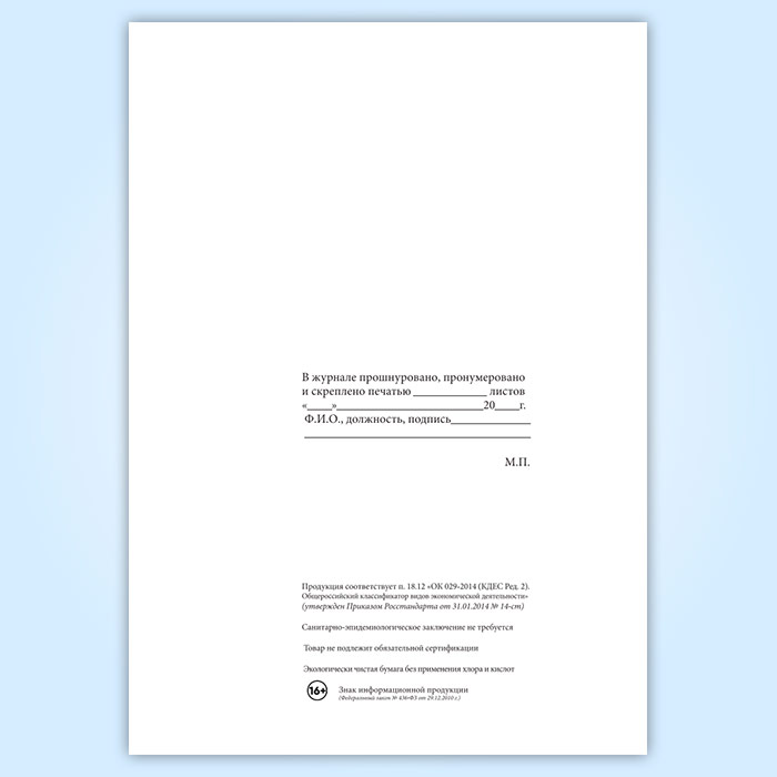 Вы получаете печатную продукцию прошнурованной и c местом для вашей печати в соответствии с действующими нормативными документами: