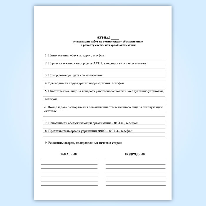 Журнал регистрации работ по техническому обслуживанию и ремонту систем пожарной автоматики в Химках купить