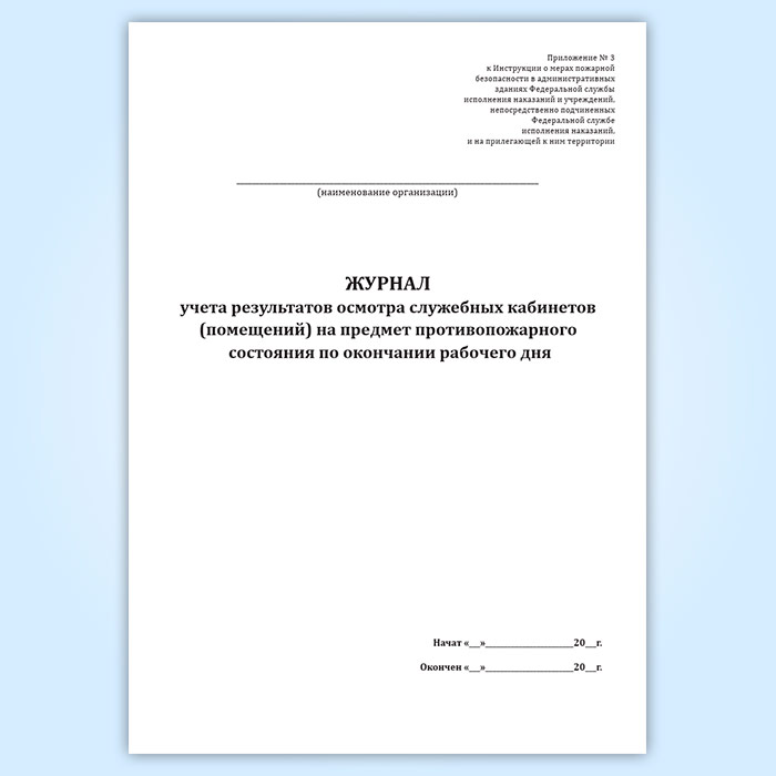 Журнал учета результатов осмотра служебных кабинетов (помещений) на предмет противопожарного состояния по окончании рабочего дня в Химках купить
