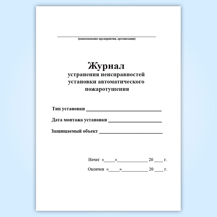 Журнал устранения неисправностей установки автоматического пожаротушения в Химках купить