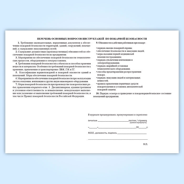 Журнал регистрации инструктажей по пожарной безопасности в Химках купить