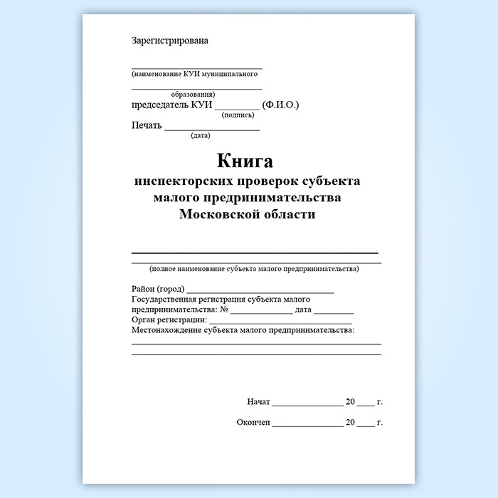Книга инспекторских проверок субъекта малого предпринимательства Московской области в Химках купить