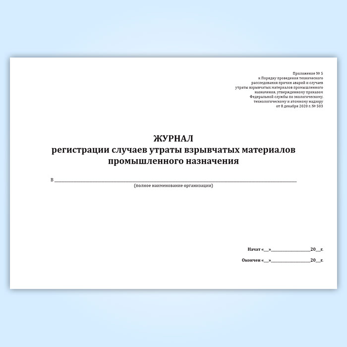 Журнал регистрации случаев утраты взрывчатых материалов промышленного назначения в Химках купить