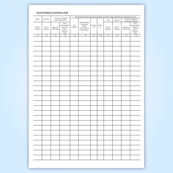 Журнал учета выдачи в производство и возврата неиспользованных сварочных материалов в Химках купить