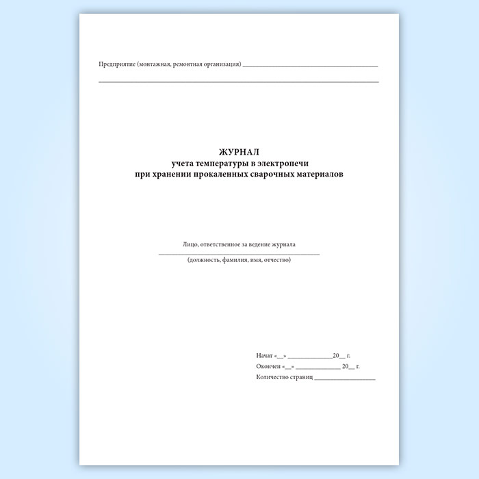 Журнал учета температуры в электропечи при хранении прокаленных сварочных материалов в Химках купить