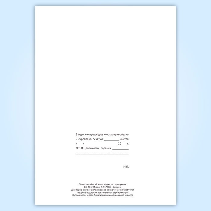 Вы получаете печатную продукцию прошнурованной и c местом для вашей печати в соответствии с действующими нормативными документами: