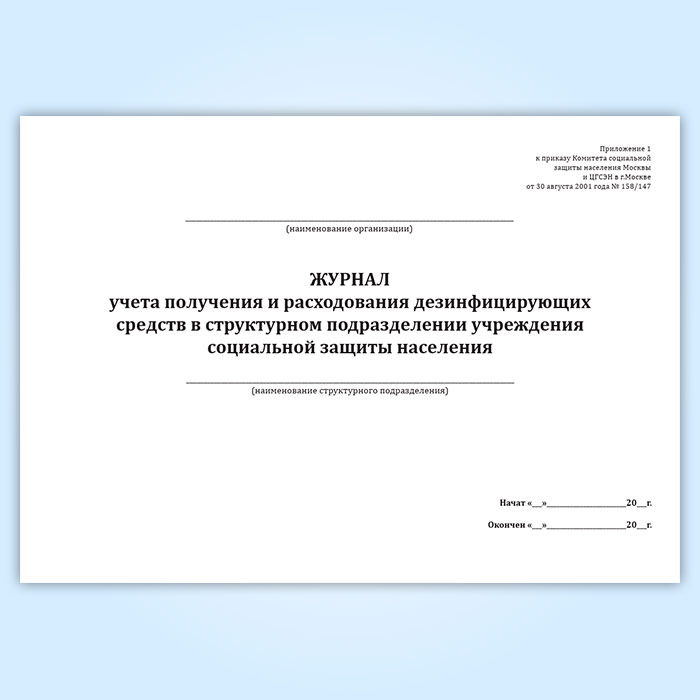 Журнал учета получения и расходования дезинфицирующих средств в структурном подразделении учреждения социальной защиты населения в Химках купить