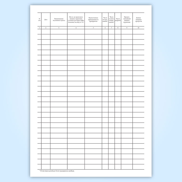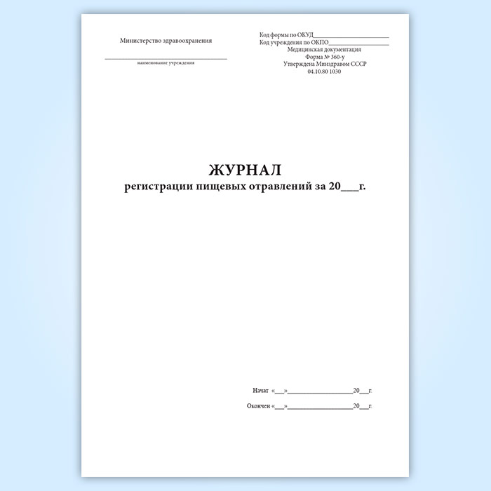 Журнал регистрации пищевых отравлений за год (форма 360/у) в Химках купить