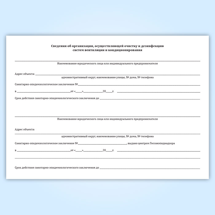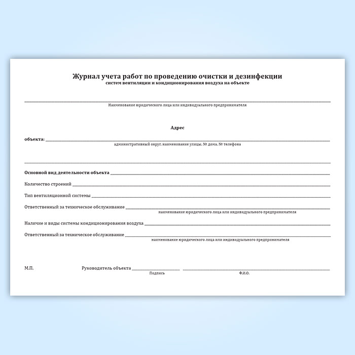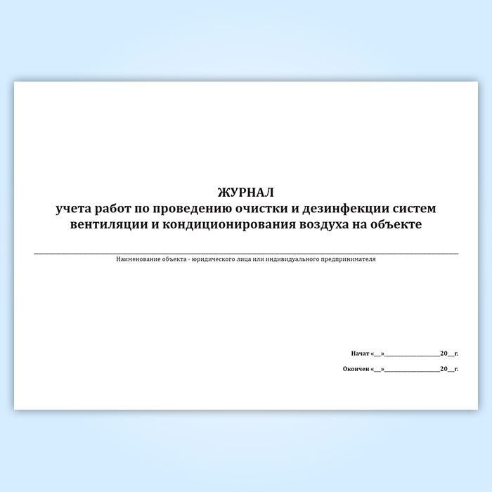 Журнал учета работ по проведению очистки и дезинфекции систем вентиляции и кондиционирования воздуха на объекте в Химках купить