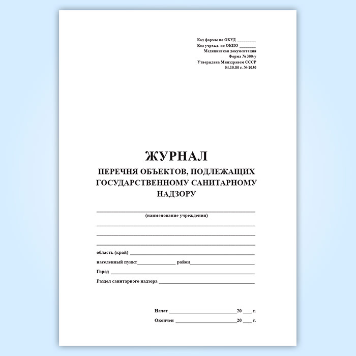 Журнал перечня объектов, подлежащих государственному санитарному надзору (форма 300/у) в Химках купить