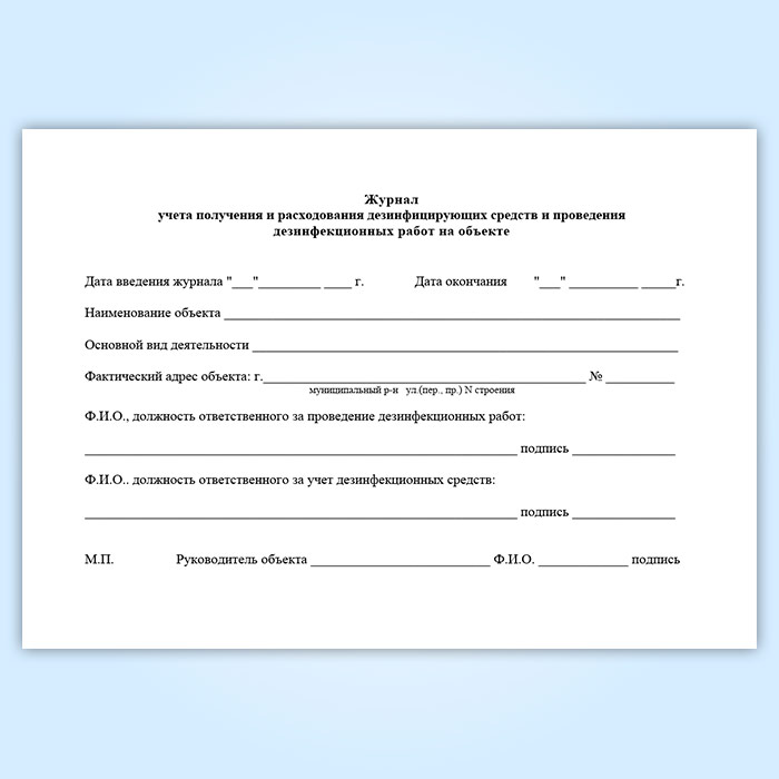 Журнал учета получения и расходования дезинфицирующих средств и проведения дезинфекционных работ на объекте в Химках купить