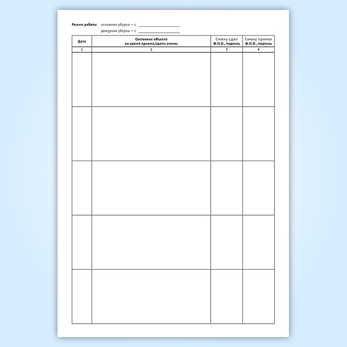 Журнал приема-сдачи смен (для уборки помещения) в Химках купить