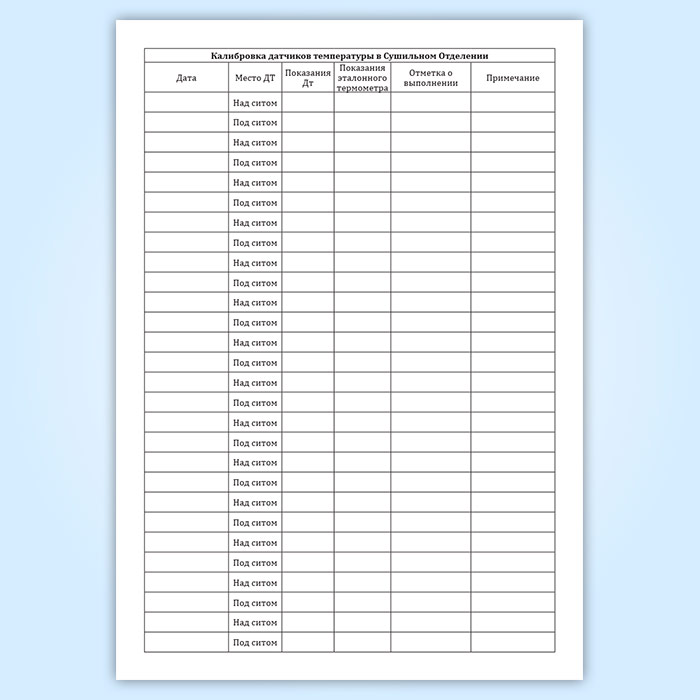 Журнал калибровки датчиков температуры в сушильном отделении в Химках купить