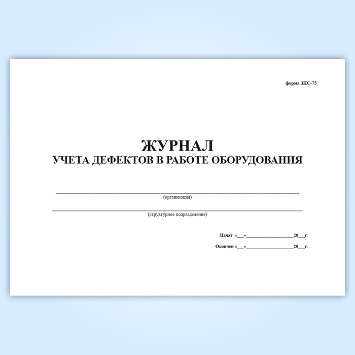 Журнал учета дефектов в работе оборудования (форма ЗПС-75) в Химках купить