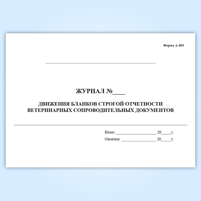 Журнал движения бланков строгой отчетности ветеринарных сопроводительных документов (форма А-003) в Химках купить