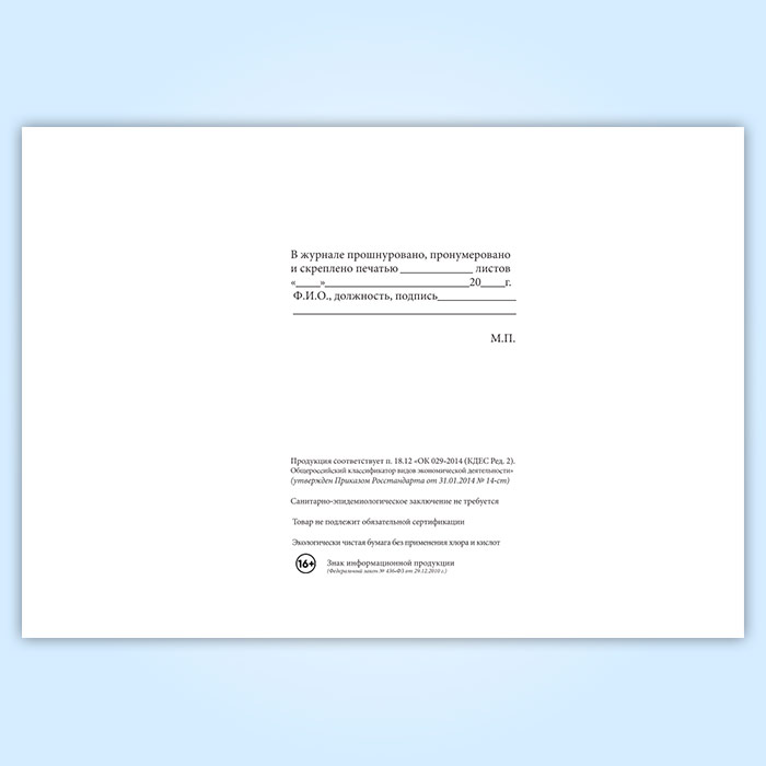 Вы получаете печатную продукцию прошнурованной и c местом для вашей печати в соответствии с действующими нормативными документами: