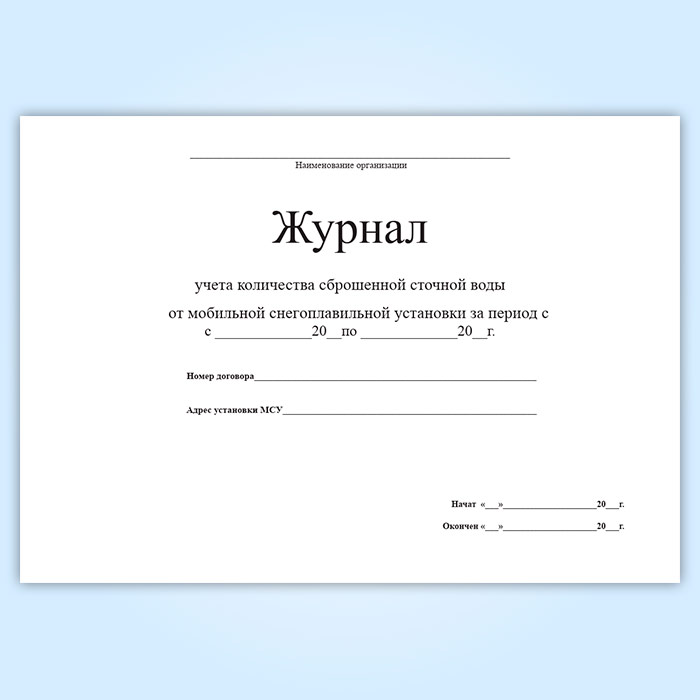 Журнал учета количества сброшенной сточной воды от мобильной снегоплавильной установки в Химках купить