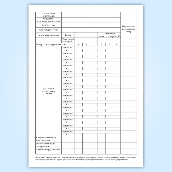 Журнал регистрации температуры бетона в монолитных конструкциях в Химках купить