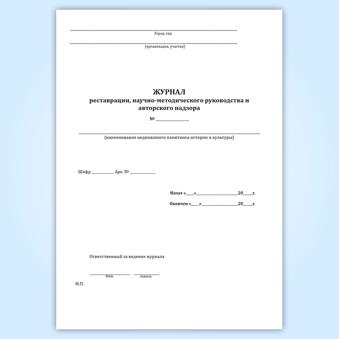Журнал реставрации, научно-методического руководства и авторского надзора в Химках купить