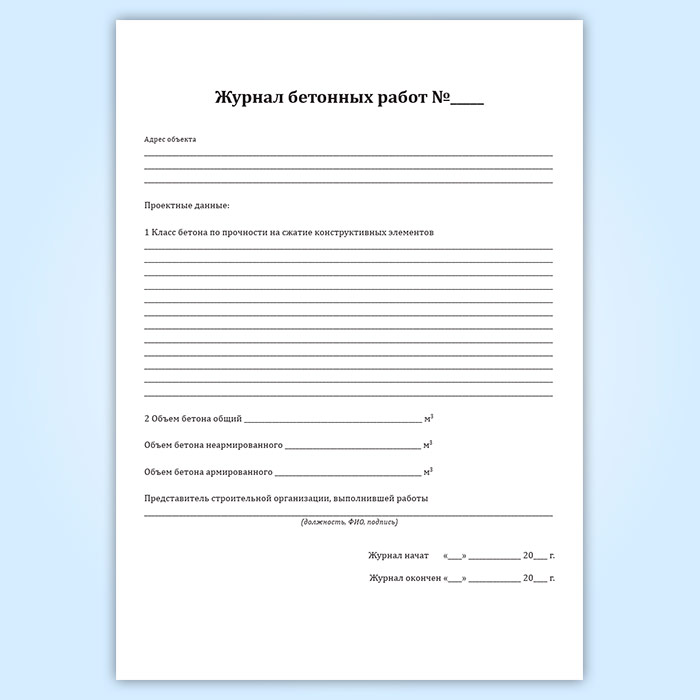 Журнал бетонных работ (форма 12.1, СП 392.1325800.2018) в Химках купить