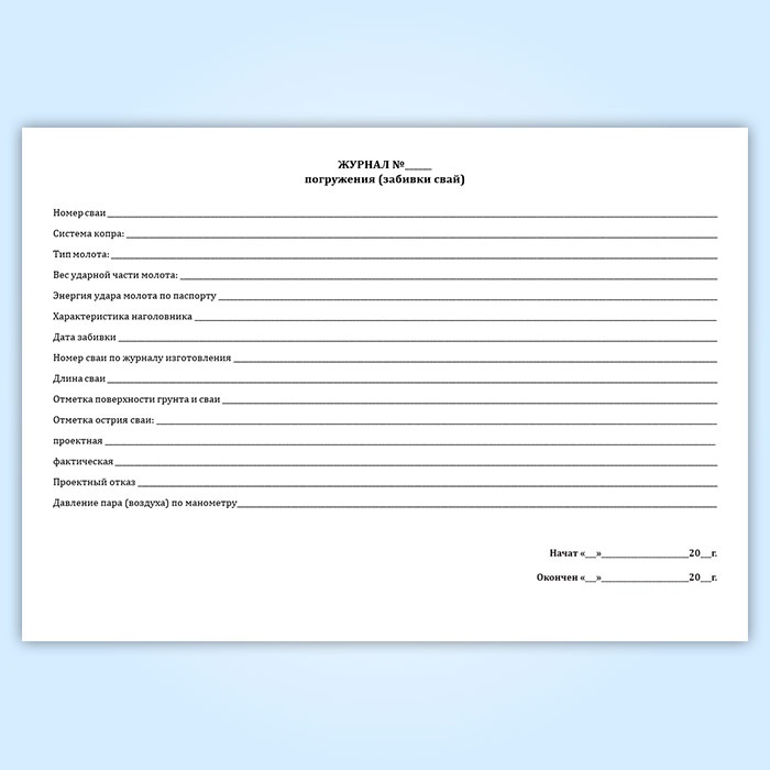 Журнал погружения (забивки свай) (форма 4.1) в Химках купить